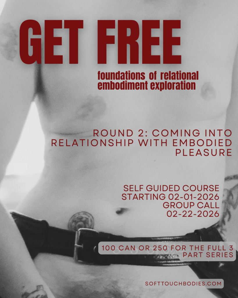 Get Free is a self paced virtual series where you are thoughtfully guided by Kori Doty and Jess DeVries over three months to explore living in your body, cultivating pleasure, and sharing it with others.